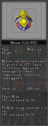សម្ភារៈដែលអាចទិញយកបានរួមមាន PK Medicines ដែលអាចប្រើនៅក្នុងWorld Martial Combat Competition ផ្សេងៗ។