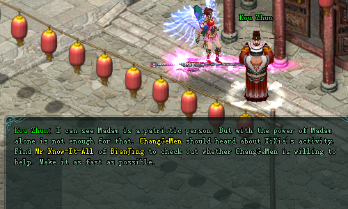 នៅពេលដែលលោកអ្នកឈានដល់កម្រឹត Level 70 អ្នកអាចចាប់ផ្តើមបេសសកម្មនៅក្រុង FengXiang ។ ដោយតម្រូវអោយអ្នកទៅជួបជាមួយ NPC (Kou Zhun)ដែលស្ថិតនៅទីក្រុង Bianjing