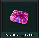 នៅពេលដែលអ្នកកម្សាន្តបើក Five Blessing Pack (Gift) និងទទួលបាន10 Gold ភ្លាម លើស​ពី​នេះ​អ្នក​កម្សាន្ត​និង​ទទួល​បាន​រង្វាន់​ផ្សេងៗ​ដូច​តារាង​ខាង​ក្រោម​៖​