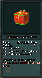 ពេលដែលលោកអ្នកធ្វើការបើក Christmas Large Package នឹងទទួលបាន Exp 500.000 ព្រមទាំងរង្វាន់មួយក្នុងចំណោមរង្វាន់តារាងខាងក្រោមៈ
