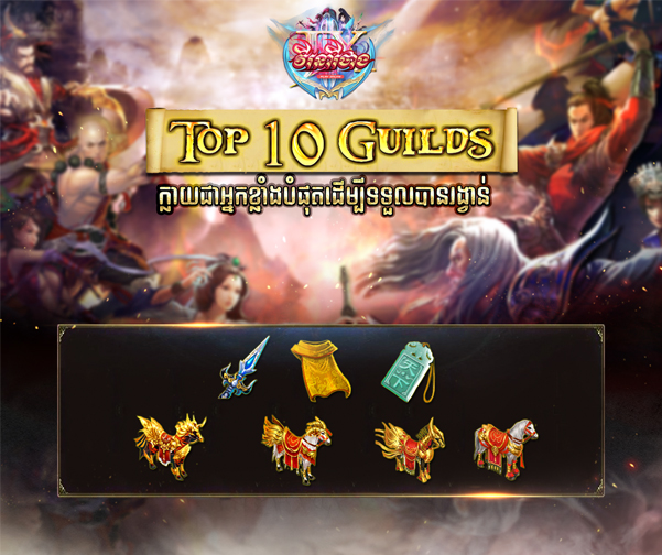 ការប្រកួតប្រជែងបានមកដល់ទៀតហើយជាមួយសេវាកម្សាន្តនិស្ស័យស្នេហ៍ដាវទេព។ ការចាប់បដិសន្ធិនៃនគរថ្មី ការចាប់កំណើតនៃអ្នកក្លាហានថ្មី ការចាប់ដៃគ្នាបង្កើតជាក្រុមដើម្បីក្លាយជាក្រុមអធិរាជប្រចាំនគរ GuildWar គឺនឹងធ្វើអោយសេវាកម្សាន្តនិស្ស័យស្នេហ៍ដាវទេពរឹតតែមានភាពជក់ចិត្ត ភាពតាងតឹង ក៏ដូចជាភាពប្រកួតប្រជែង ដើម្បីឱ្យក្រុមរបស់ខ្លួនក្លាយជាក្រុមលេខ ១ ប្រចាំនគរថ្មីនេះផងដែរ។ដើម្បីធ្វើអោយការប្រកួតប្រជែងកាន់តែមានភាពព្រឹព្រួច សេវាកម្សាន្តនិស្ស័យស្នេហ៍ដាវទេពបានបង្កើតនូវព្រឹត្តិការណ៍ថ្មីនេះឡើង គឺព្រឹត្តិការណ៍ Guild ទាំង១០ប្រចាំនគរ GuildWar ដើម្បីស្វែងរកក្រុមកំពូលទាំង ១០ ប្រចាំនគរថ្មីនេះ។ ដូច្នេះ យើងនាំគ្នារង់ចាំតាមដានថាតើក្រុមណាមួយនឹងក្លាយជាក្រុមកំពូលទាំង ១០ ប្រចាំនគរថ្មីនេះ? តើក្រុមណានឹងទទួលបានរង្វាន់ពីសេវាកម្សាន្តនិស្ស័យស្នេហ៍ដាវទេព? កុំភ្លេចតាមដានទាំងអស់គ្នាណា!