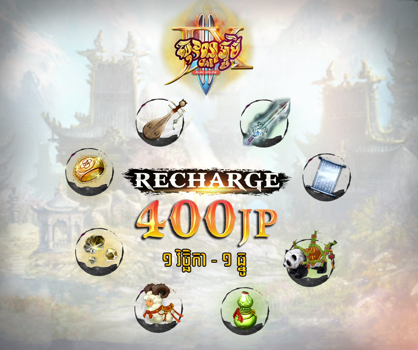 - ក្រោយពីអ្នកកម្សាន្តធ្វើការបើកកាដូរួចហើយ បើសិនជាអ្នកកម្សាន្តធ្វើការ recharge ៤០០ JP ជាលើកទី២ អ្នកកម្សាន្តមិនអាចទទួលកាដូជាលើកទី ២ នោះទេ។ គណនីមួយអាចទទួលបានកាដូតែមួយប៉ុណ្ណោះសម្រាប់ព្រឹត្តិការណ៍នេះ។