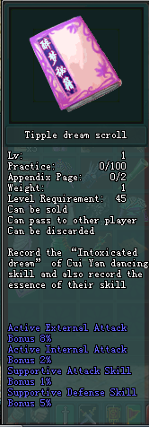 Dream Snack In the process of dream snack can increase self-Ex. Atk power [100]%x scroll Ex.attk increase, but at the same time cause yourself in immobilize situation