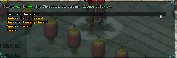 • ដើម្បីចូលរួមប្រកួតបានអ្នកត្រូវទៅចុះឈ្មោះនៅ ”Champion Envoy“​ ដែល​មាន​ទី​តាំង​នៅក្រុង BianJing (177/174)​