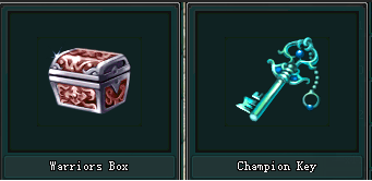 • អ្នកកម្សាន្តបើក Warrior Box ដោយប្រើប្រាស់  Champions Key (អាចរកទិញបាននៅ Imperial Street)