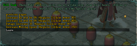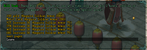 • អ្នកអាចយក  Solider Armor ទៅផ្លាស់ផ្តូវយក Item ឬ Buff ជាច្រើនជាមួយ  NPC Champion Envoy។