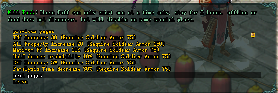 • រាល់ពេលដែល Small Boss  ត្រូវបានសម្លាប់ Party អ្នកសម្លាប់ទាំងមូលនិងទទួលបាន Solider Armor