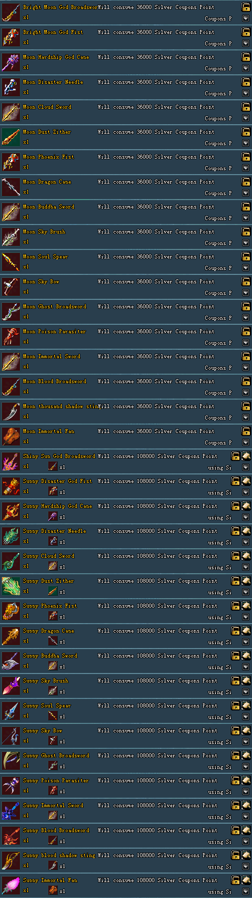 1. ឥឡូវ នេះអ្នកអាចទិញអាវុធ Moon និង Sunny បាននៅក្នុង Book of Event ដោយយក Silver Coupons