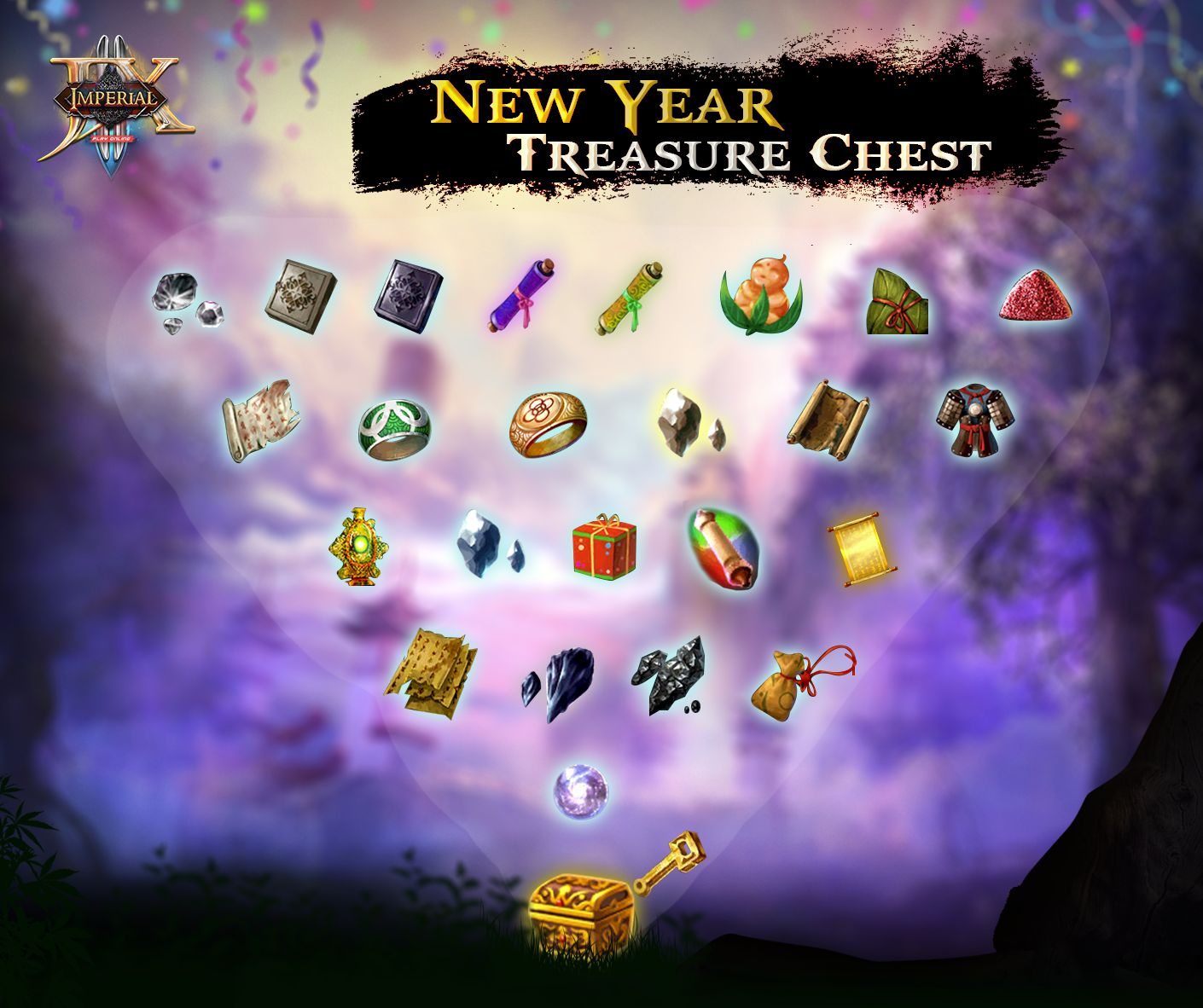 ដើម្បីធ្វើការបើក [New Year Treasure Chest] បានអ្នកត្រូវមាន New Year Gold Key ដែលមានលក់នៅ Imperial Street (New Year Gold Key Package = 99Jp )