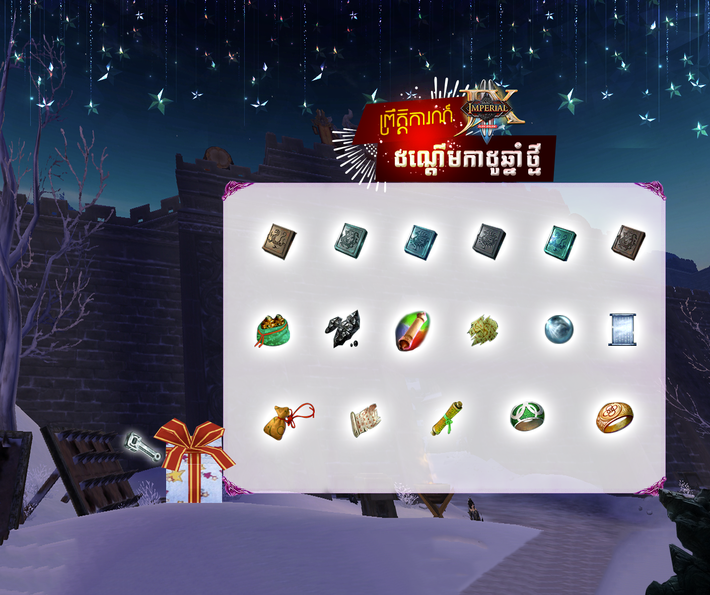 បញ្ជាក់៖ ក្នុងអំឡុងពេលនៃព្រឹត្តិការណ៍នេះតួអ្គងនីមួយៗអាចបើក [New Year Package] បានត្រឹមតែ 300 កាដូប៉ុណ្ណោះក្នុងមួយថ្ងៃ។