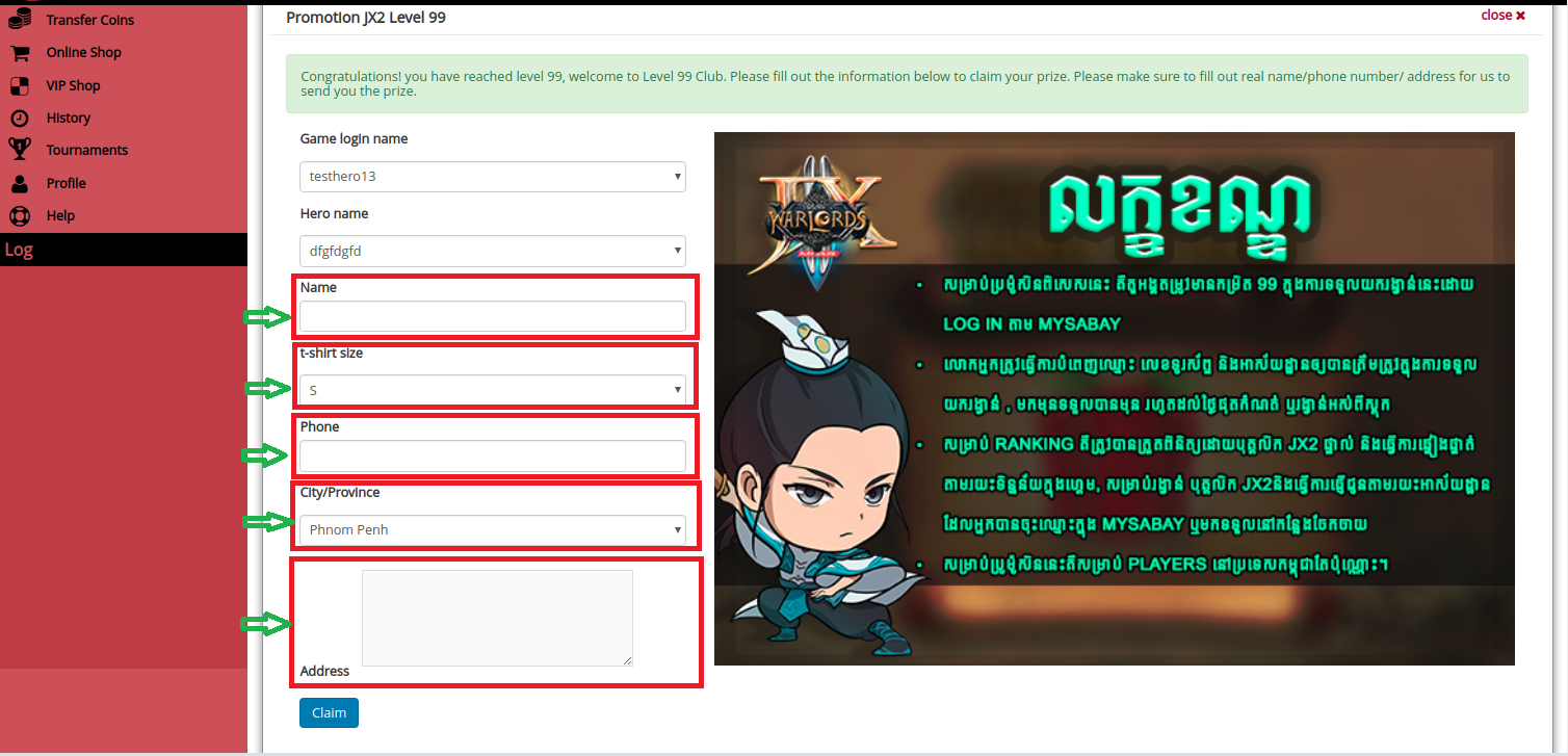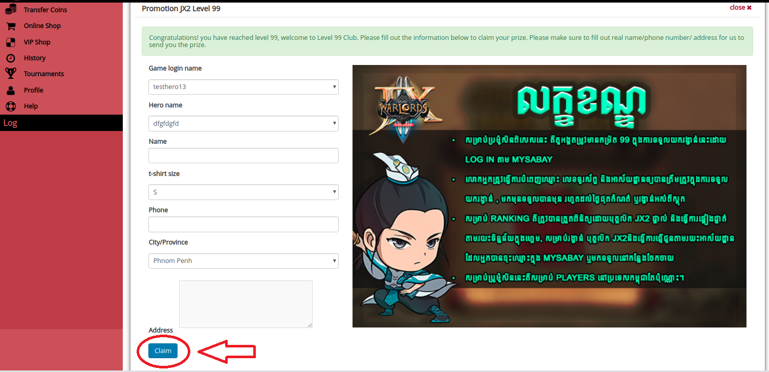 របៀបក្នុងការចុះឈ្មោះបើកយករង្វាន់( Promotion Level 99)