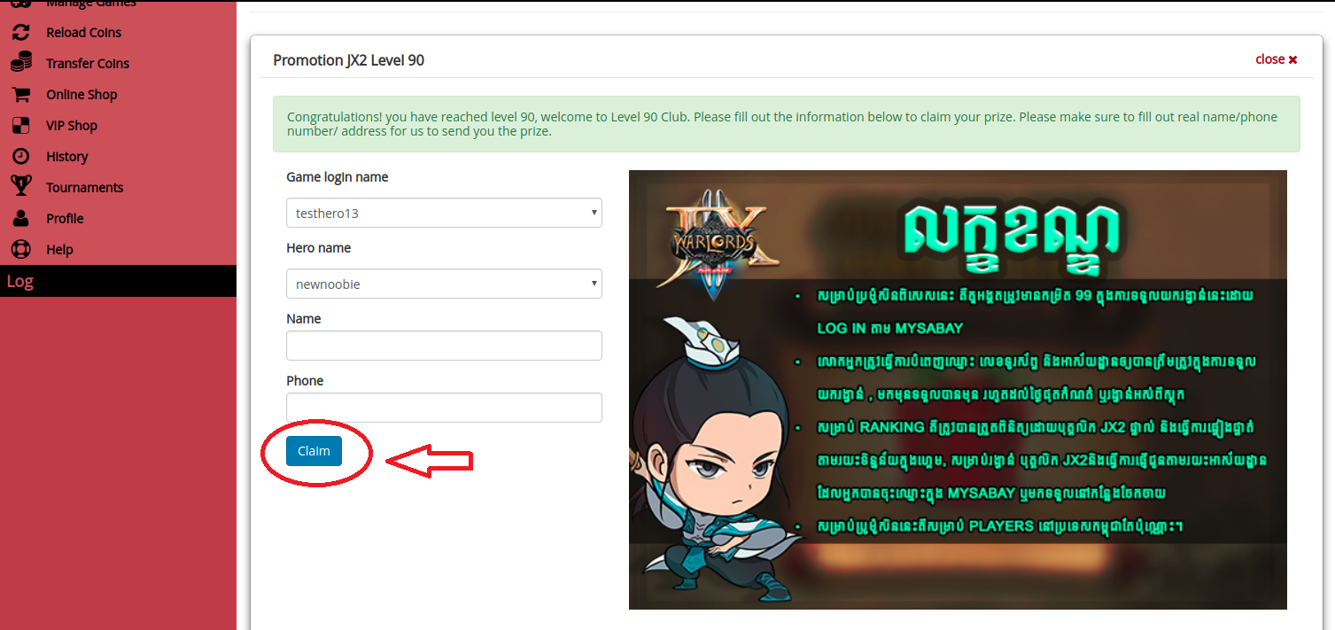 របៀបក្នុងការចុះឈ្មោះបើកយករង្វាន់(Promotion Level 90-98)