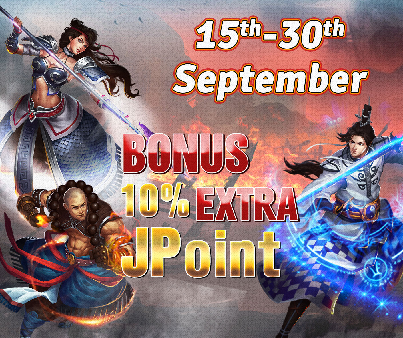1.រាល់ការបញ្ចូលSabay coin ក្នុងJXIIនឹងទទួលបានរង្វាន់បន្ថែម១០%នៃJP ដែលបានបញ្ចូល(បញ្ចូលតាមរយះMysabay និងMGC card ចាប់ពី១០Sabay coinឡើងទៅ)សពុលភាពរង្វាន់បន្ថែមនេះចាប់ពីថ្ងៃទី១៥ ដល់ថ្ងៃទី៣០ខែកញ្ញាឆ្នាំ២០១៩។
