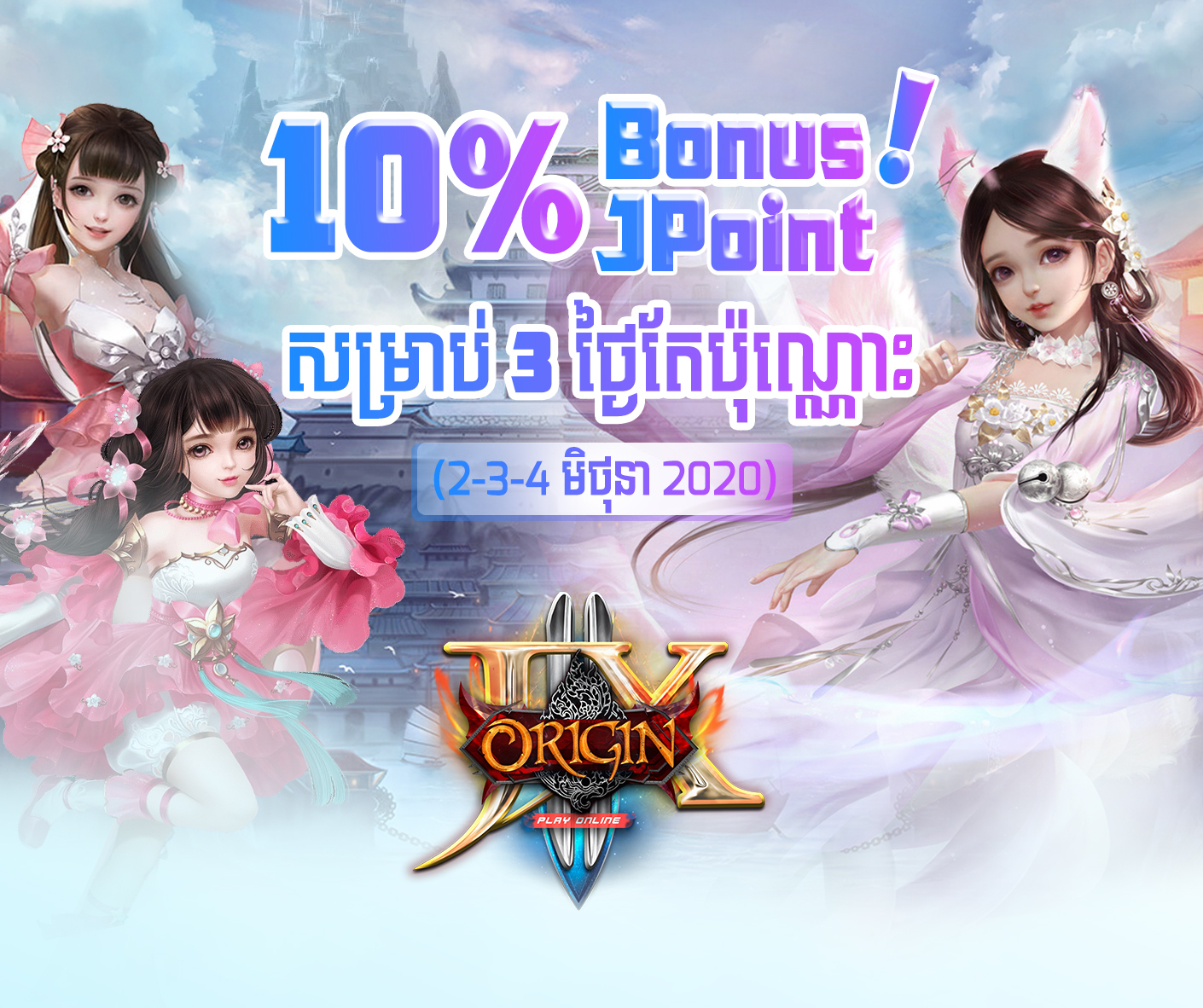 រាល់ការបញ្ចូលSabay coin ក្នុងJXIIនឹងទទួលបានរង្វាន់បន្ថែម១០%នៃJP ដែលបានបញ្ចូល(បញ្ចូលតាមរយះMysabay ចាប់ពី១០ Sabay coinឡើងទៅ)ហើយការផ្ដល់ជូនរង្វាន់បន្ថែមនេះគឺមានរយះពេលតែបីថ្ងៃប៉ុណ្ណោះ ដែលគិតចាប់ពីថ្ងៃទី02ខែមិថុនាឆ្នាំ 2020 រហូតដល់ថ្ងៃទី០៤ខែមិថុនាឆ្នាំ 2020នេះ ។