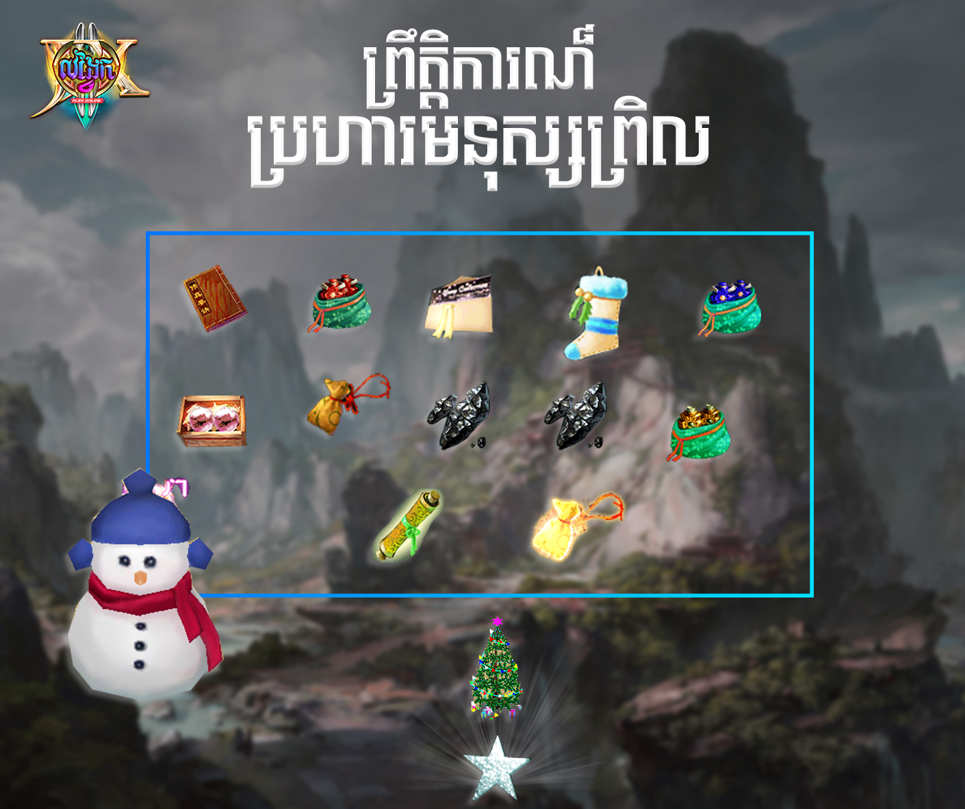 Version 12.3នឹងធ្វើការUpdate នៅថ្ងៃទី01 ខែ ធ្នូ ឆ្នំា 2020 ខាងមុខនេះ នៅក្នុងការ Update​ Versionនេះផងដែលយើងនឺងមានព្រឹត្តិការណ៍ផ្សេងៗដូចជា  VIP4 ព្រឹត្តិការណ៏ប្រហារមនុស្សព្រិល ការបញ្ចុះតម្លៃ50% ទៅលើ Outer Cloth​ ព្រឹត្តិការណ៏មហាសង្គ្រាម៣ប្រទេស និងព្រឹត្តិការណ៏អាហារជួបជុំ ទទួលបាននូវបទពិសោធន៏ថ្មីៗ​បន្ថែមទៀតផងដែរ ។​ ​ព្រឹត្តិការណ៏ខាងក្រោមនេះ