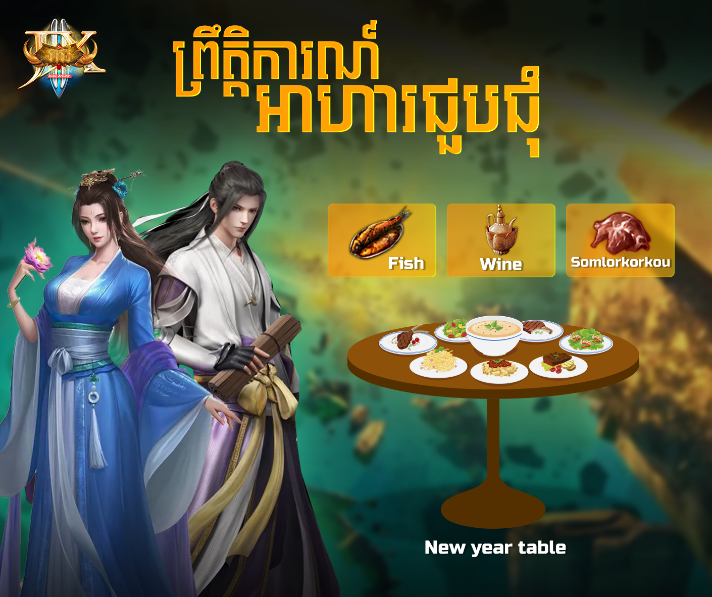 Synthesis to New Year Banquet ត្រូវការ “Fish” “Wine” “Somlorkorkou”