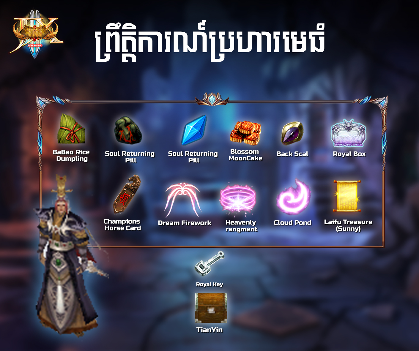 អ្នកអាចទទួលបានរង្វាន់ការចូលរួមជា Exp 1,000,000 និង Royal Box 10 និង Resources Box Key*1 ក្នុងមួយតួអង្គរបស់អ្នកដោយគ្រាន់តែ ចូលទៅដល់ក្នុង “Map Champion”។