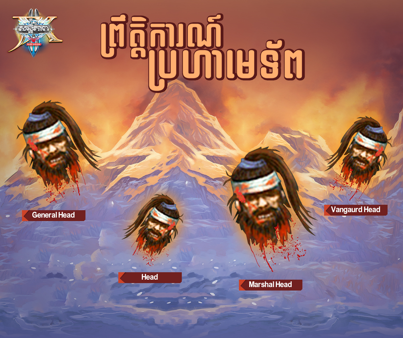 - ក្នុងកំឡុងនៃព្រឹត្តិការណ៍នេះនិងនៅក្នុងផែនទីនេះ អ្នកអាចវាយប្រហារតួអង្គដទៃដើម្បីទទួលបានក្បាលនៃឋានៈនៃអ្នកស្លាប់នោះ។