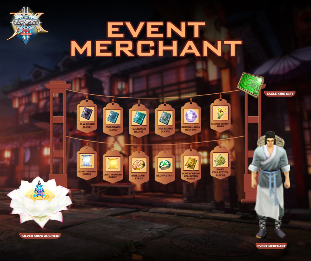 ក្នុងការបើកប្រអប់ Eagle King Box ដោយប្រើ Eagle King Key*1 ដែលមានលក់នៅក្នុង Imperial Street នៅពេលបើក Eagle King Box អ្នកនឹងអាចទទួលបានភ្លាមៗដូចជា ៖Experience : 5០០០០Exp , Overlord Token *50 , Eagle King Gift *1
