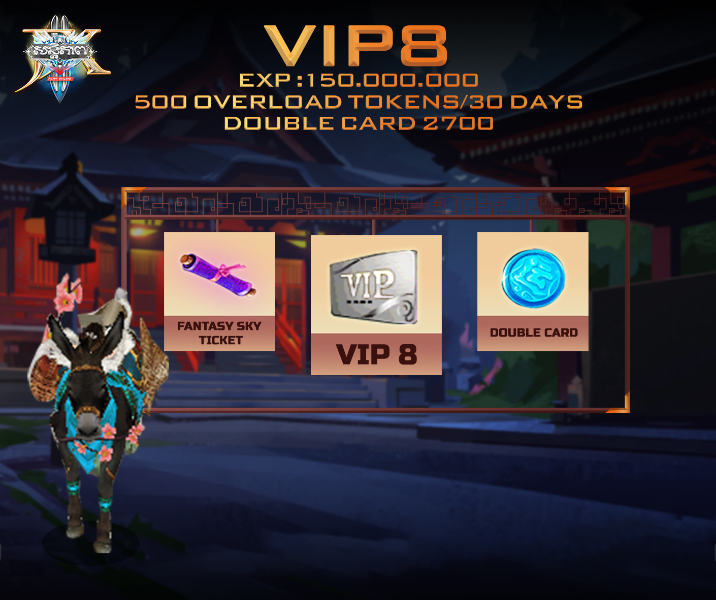 • អ្នកលេងទាំងអស់អាចចូលទិញItem ដែលមានឈ្មោះ ថា ”VIP8” ដែលមានតំលៃ 699JP នៅក្នុង Imperial Street។