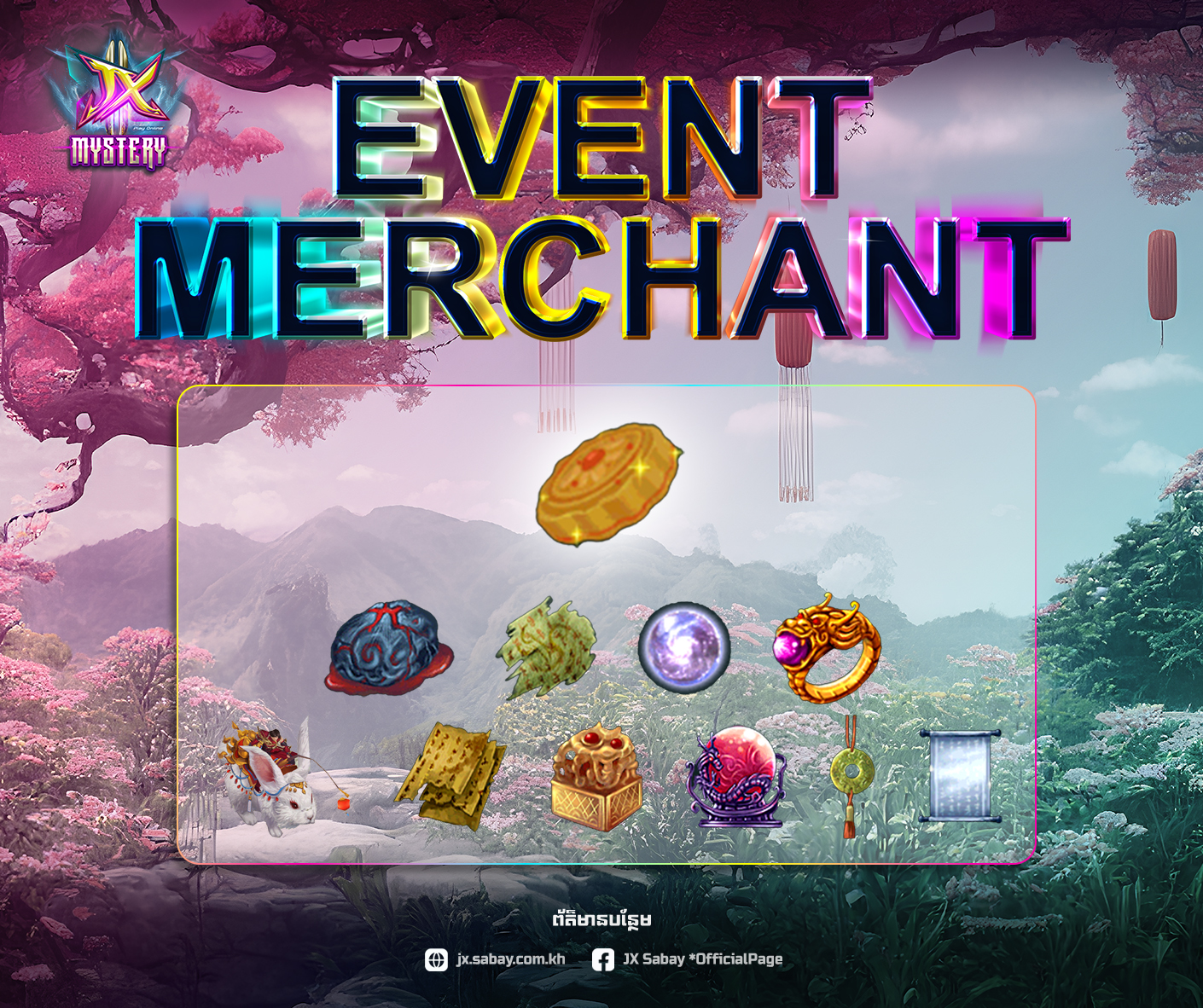 • អ្នកអាចរើសយក Mysterious Chest ​ដោយប្រើ​ Moon rabbit key​​*1 ​ដែលមានលក់នៅក្នុង Imperial Street ​នៅពេលបើក Mysterious Chest អ្នកនឹងអាចទទួលបានភ្លាមៗដូចជា​ ​ ៖​​Experience : 200000Exp , Moon Rabbit Cake *1 , Moon Rabbit Box1និងរង្វាន់មួយក្នុង ចំណោមរង្វាន់ខាងក្រោម