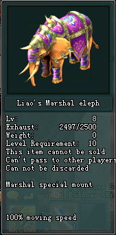 ដោយក្នុងនោះត្រូវការចំណាយ​ 5000gold និង​50000​ Player Point ទើប​ទទួល​បាន​យាន​ជំនិៈ​ជា​សត្វ​ដំរី​ដូច​រូប​ខាង​ក្រោម​៖